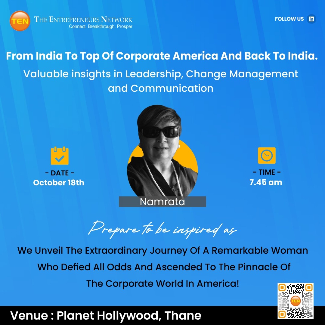 Meet Namrata, as she shares her captivating story of rising from humble beginnings in India to meetings and experiences with global movers and shakers .