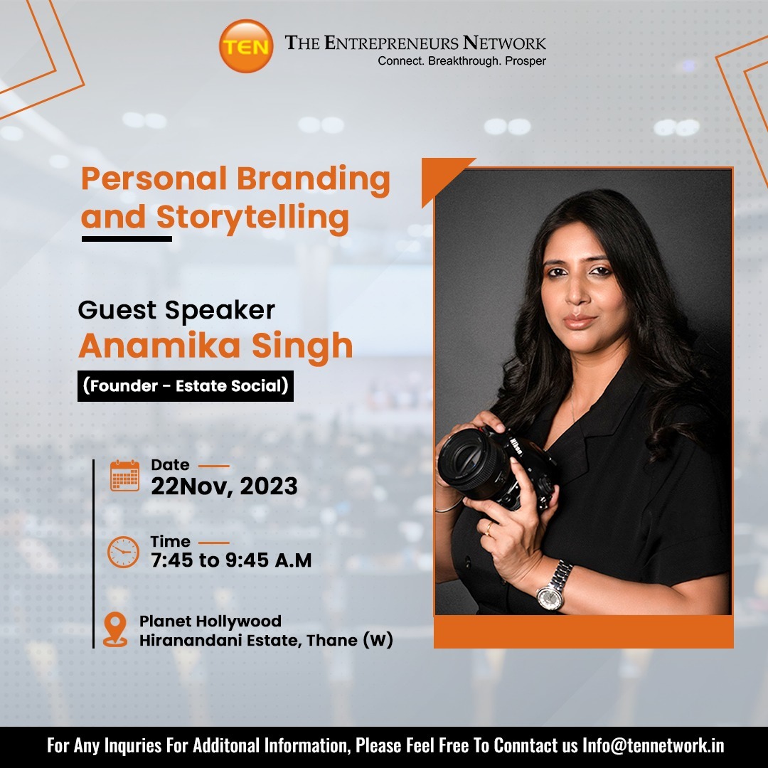 Participants enjoyed an exclusive one-hour talk on Personal Branding and Storytelling by the renowned Photographer, Nikon Ambassador, and founder of a highly successful hyper-local community Estate Social, Anamika Singh, at Planet Hollywood Hotel in Thane. 📸 Insights on crafting a compelling personal brand and storytelling that captivates, learning from the best in the industry!